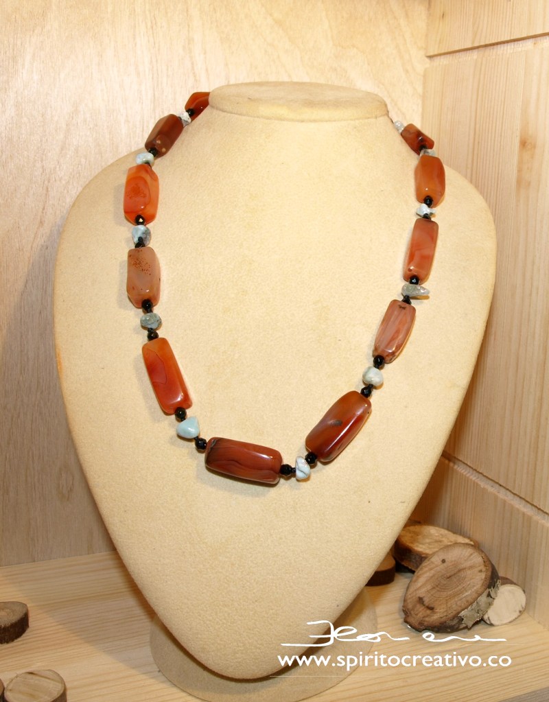 Questo progetto mi ha impegnato molto. Mi è stato dato un filo di pietre corniola lungo 50cm e poi avrei dovuto pensare a come abbinarle utilizzando quello che avevo a disposizione allontanandomi però dallo stile “classico”. Un progetto che ha soddisfatto la mia cliente e soprattutto me.